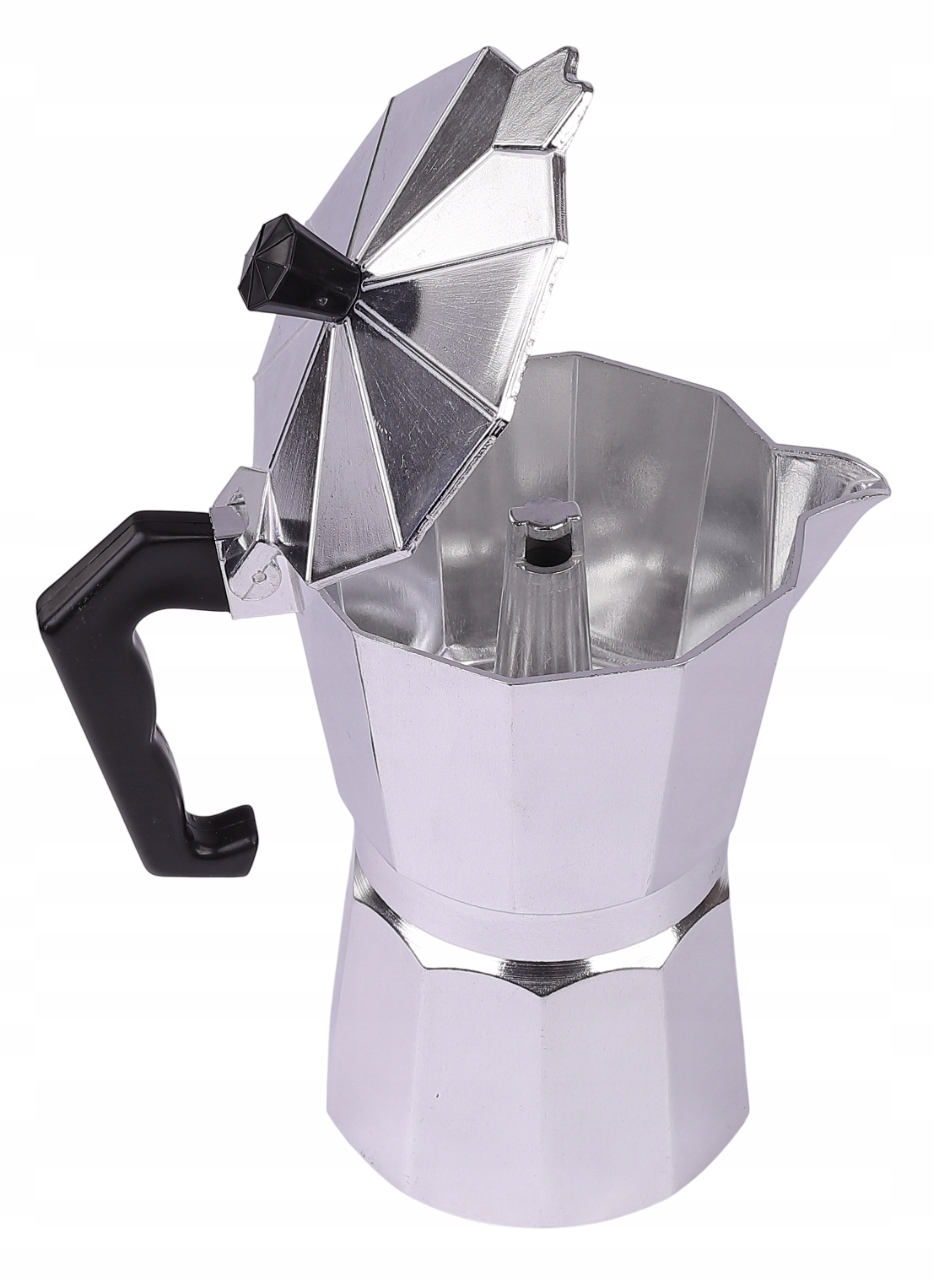 Kawiarka wykonana z wysokiej jakości aluminium, gwarantuje szybkie i równomierne rozprowadzanie ciepła. Posiada ergonomiczny uchwyt wykonany z odpornego na ciepło tworzywa sztucznego, który zapewnia wygodny chwyt.
